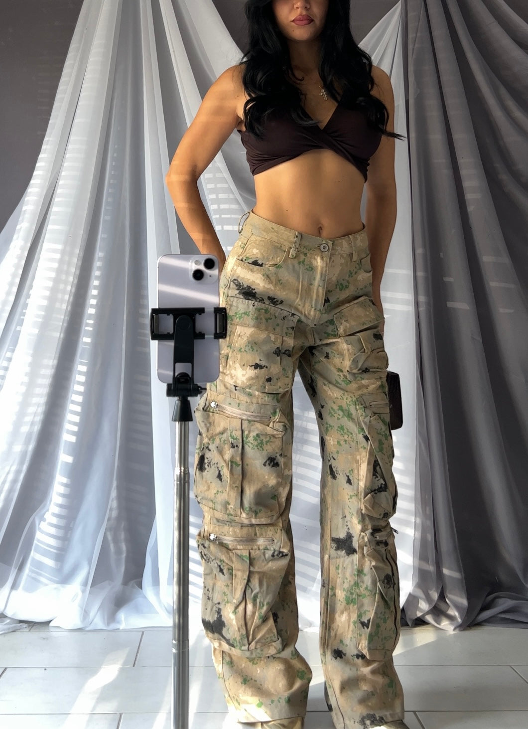 Pantalone cargo fantasia mimetica