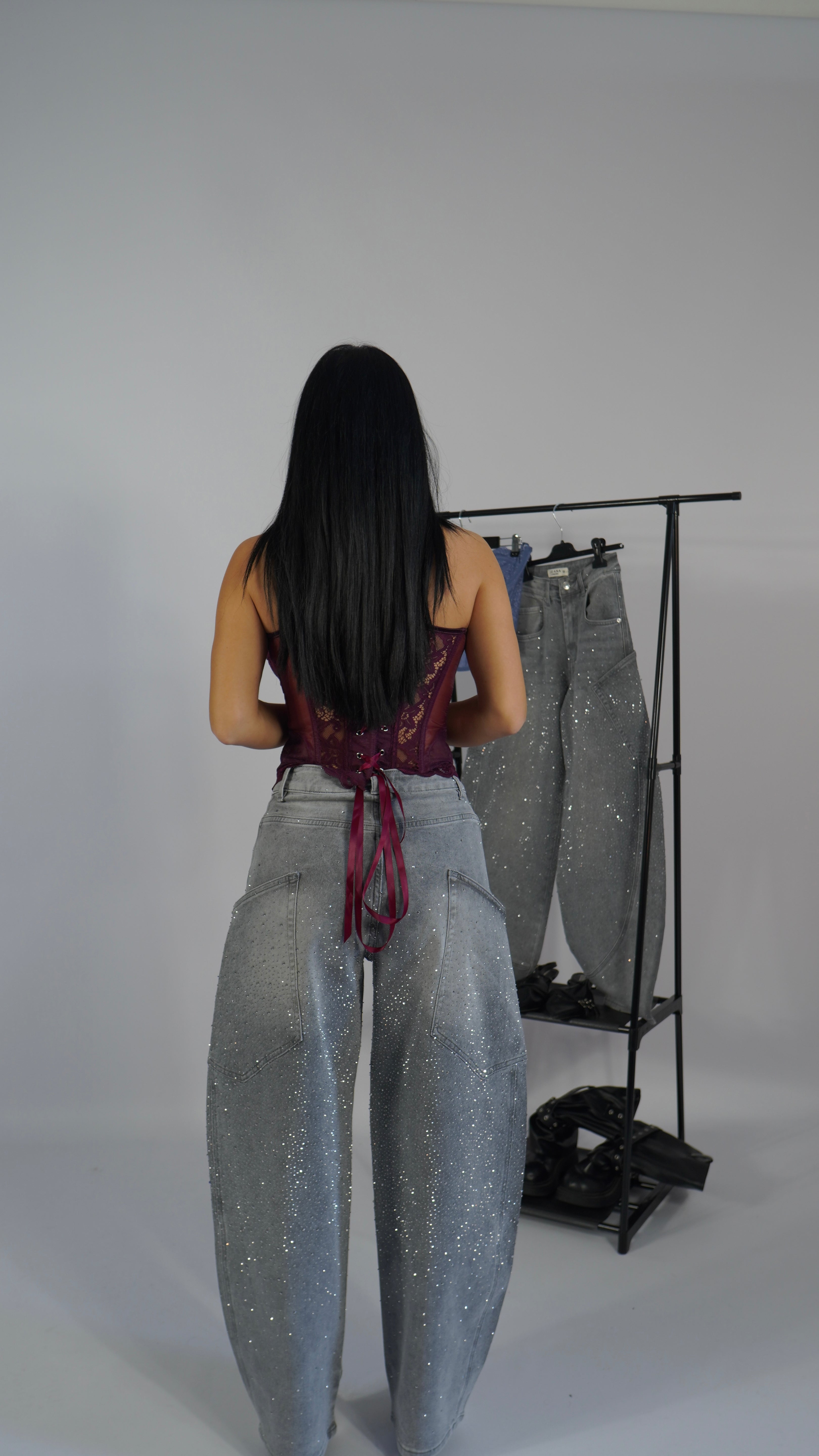 tessuto leggermente stretch ,strass anche sul retro