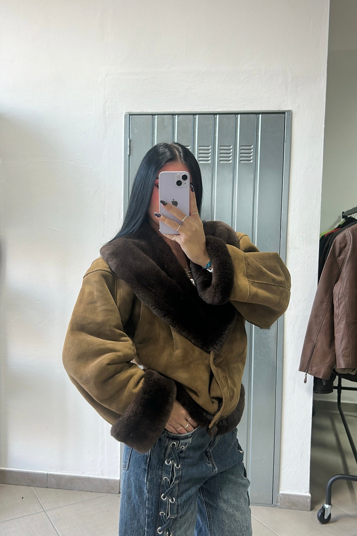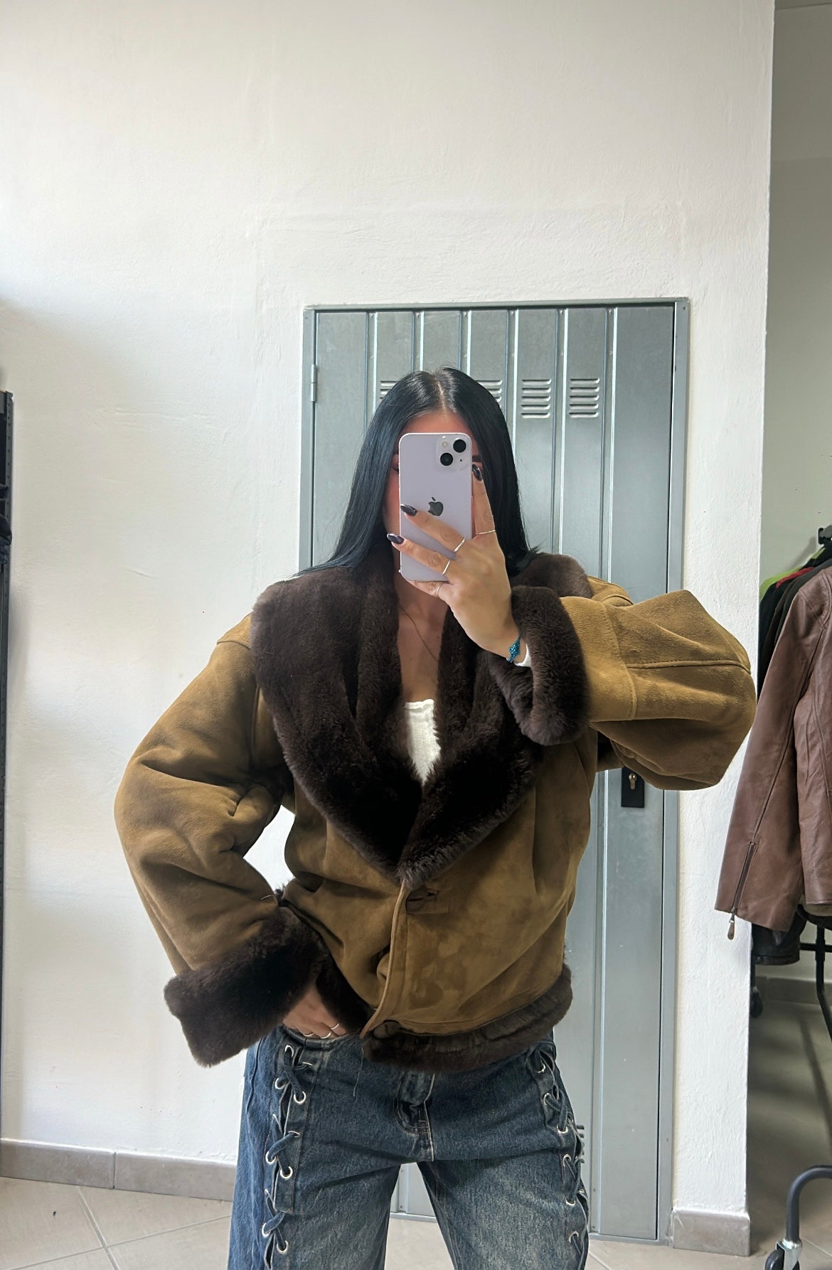 Un pezzo unico in vero stile vintage anni ’90: questo montone in shearling è il capo perfetto per chi vuole un look caldo, ricercato e senza tempo.